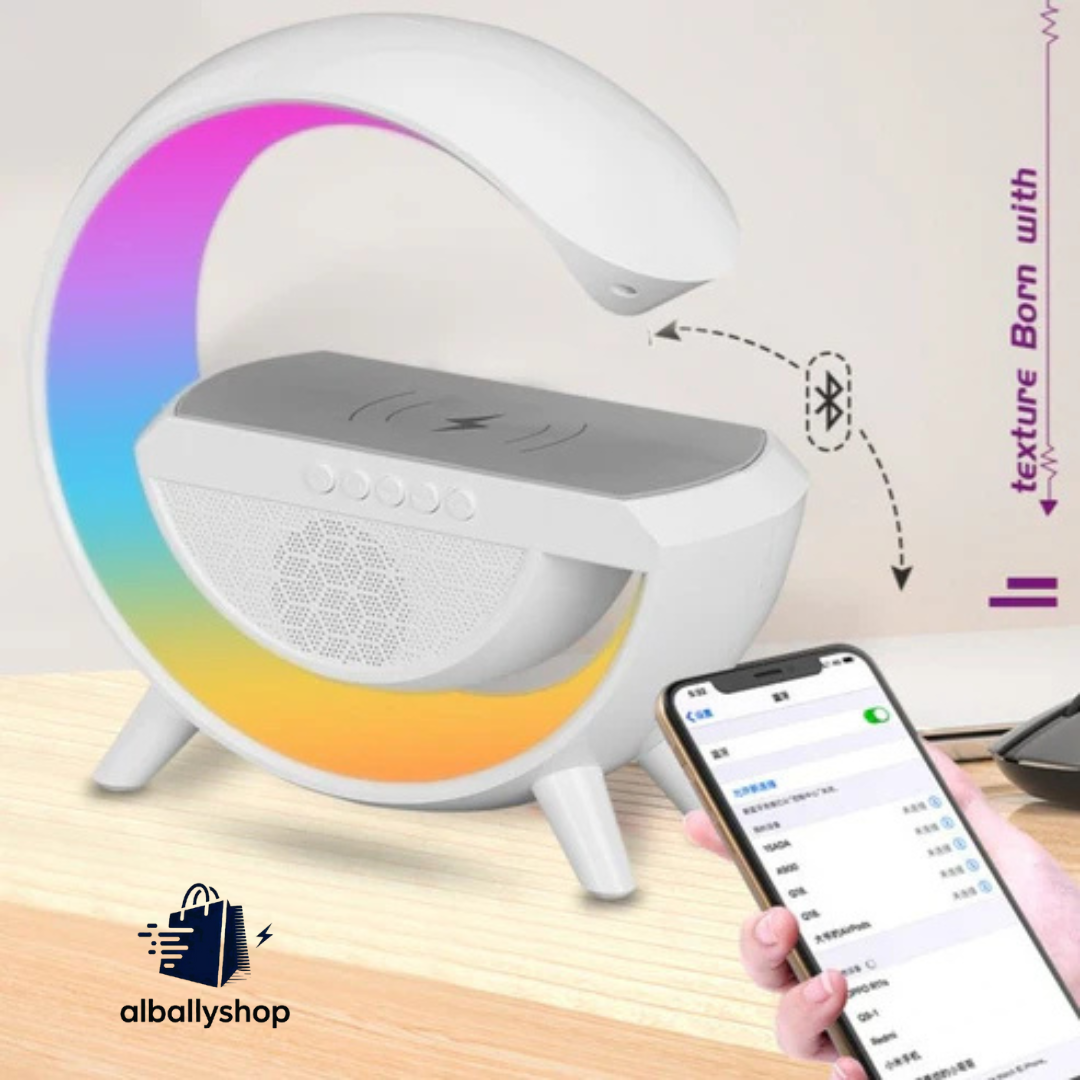 Dile adiós al desorden y vive la experiencia de tener iluminación personalizable, sonido envolvente , carga inalámbrica ultrarrápida y Altavoz Bluetooth para reproducir música, todo en un solo dispositivo elegante.